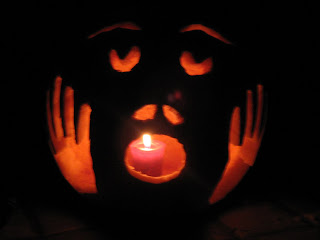 Okay you learn a lot about a person when you carve a pumpkin together. Like, "Are you really going to redo the drawing of the eyes 12 times just to get them perfectly the same?" or "When I turn my back are you going to fix everything I've just done?" Maybe Kent has a gotten a little too intense with carving :)